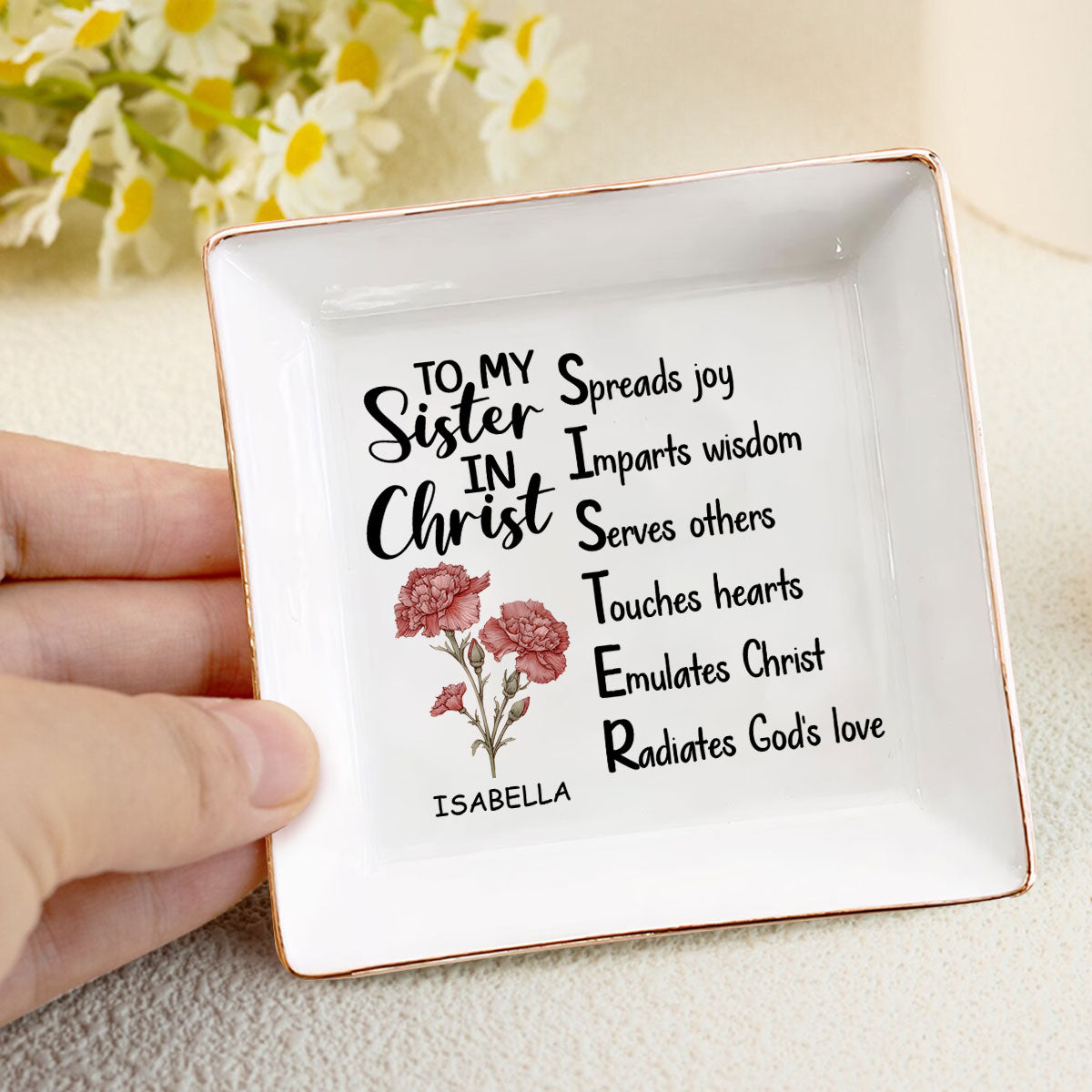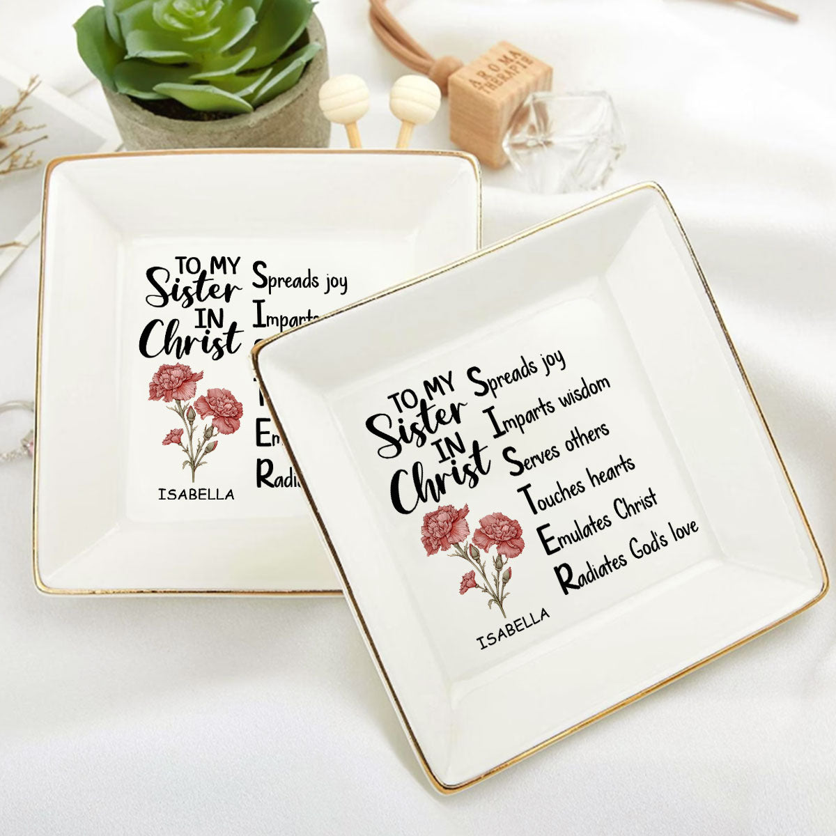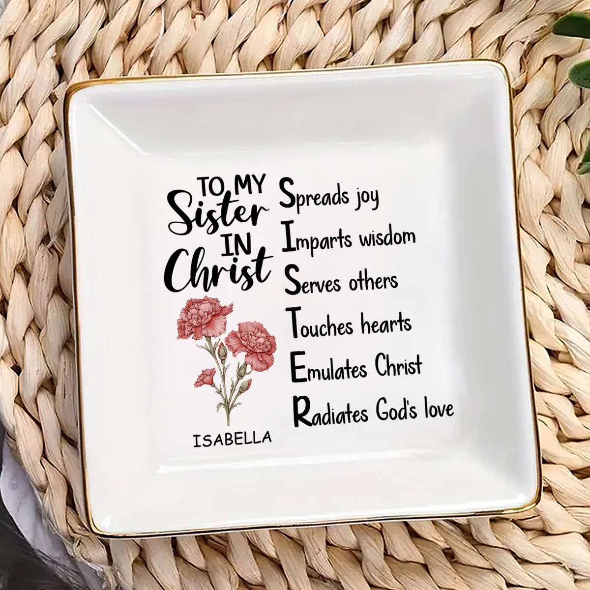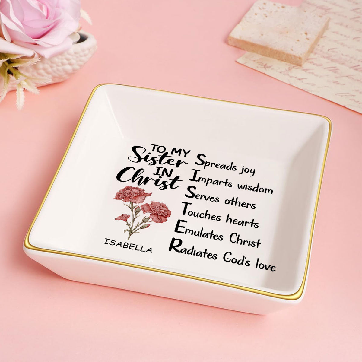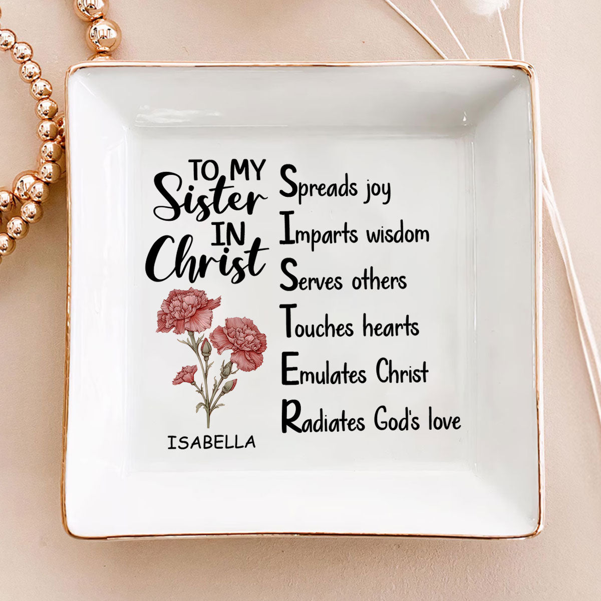 To My Sister In Christ Birth Month | Personalized Jewelry Dish