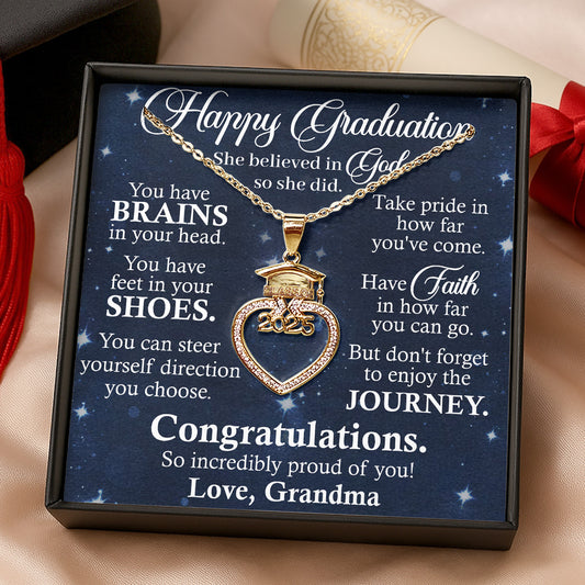 Don't Forget To Enjoy The Journey | Personalized Grad Cap Heart Necklace With Box&Card