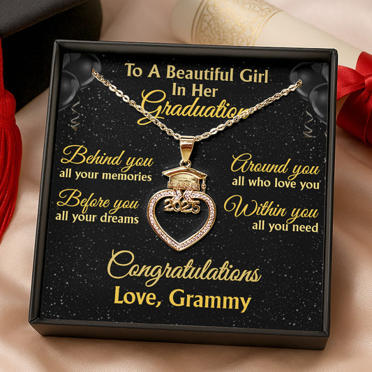 To A Beautifull Girl In Her Graduation | Personalized Grad Cap Heart Necklace With Box&Card