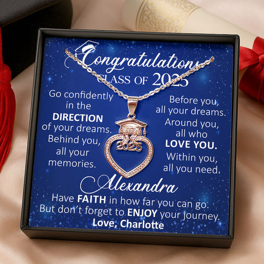 Congratulations Graduation | Personalized Grad Cap Heart Necklace With Box&Card