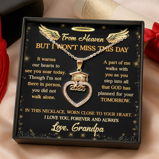 I Am In Heaven | Personalized Grad Cap Heart Necklace With Box&Card